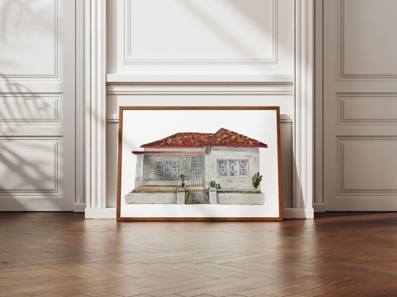 Held in their hands, in luminous watercolour washes, is the front door they walk through every day, the window with the best afternoon light, the garden they’ve poured their heart into. A home portrait that radiates the warmth and wonder that’s familiar to them – it’s the feeling of home that brings a knowing smile to those who call this place home.